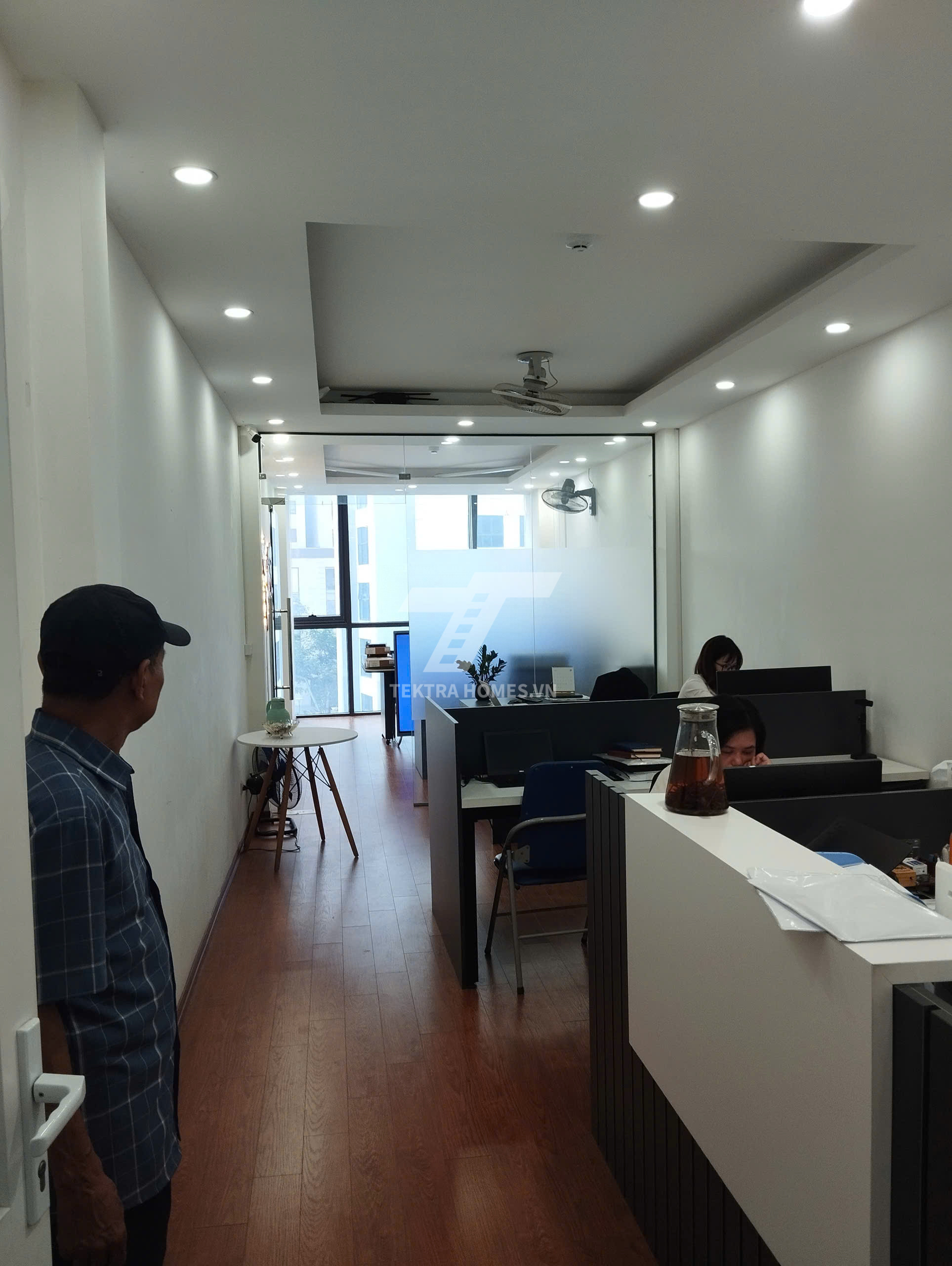 Không gian rộng rãi, thông sàn, ánh sáng tự nhiên tràn ngập nhờ hệ kính mặt tiền full, giúp tối ưu hiệu suất làm việc.