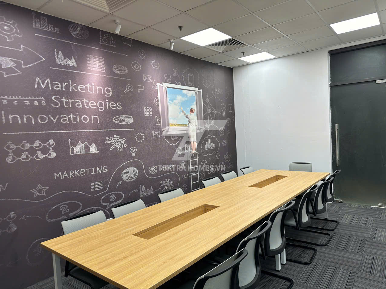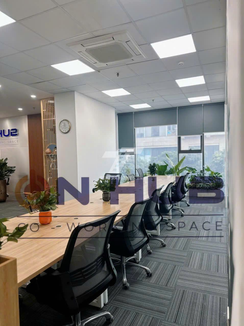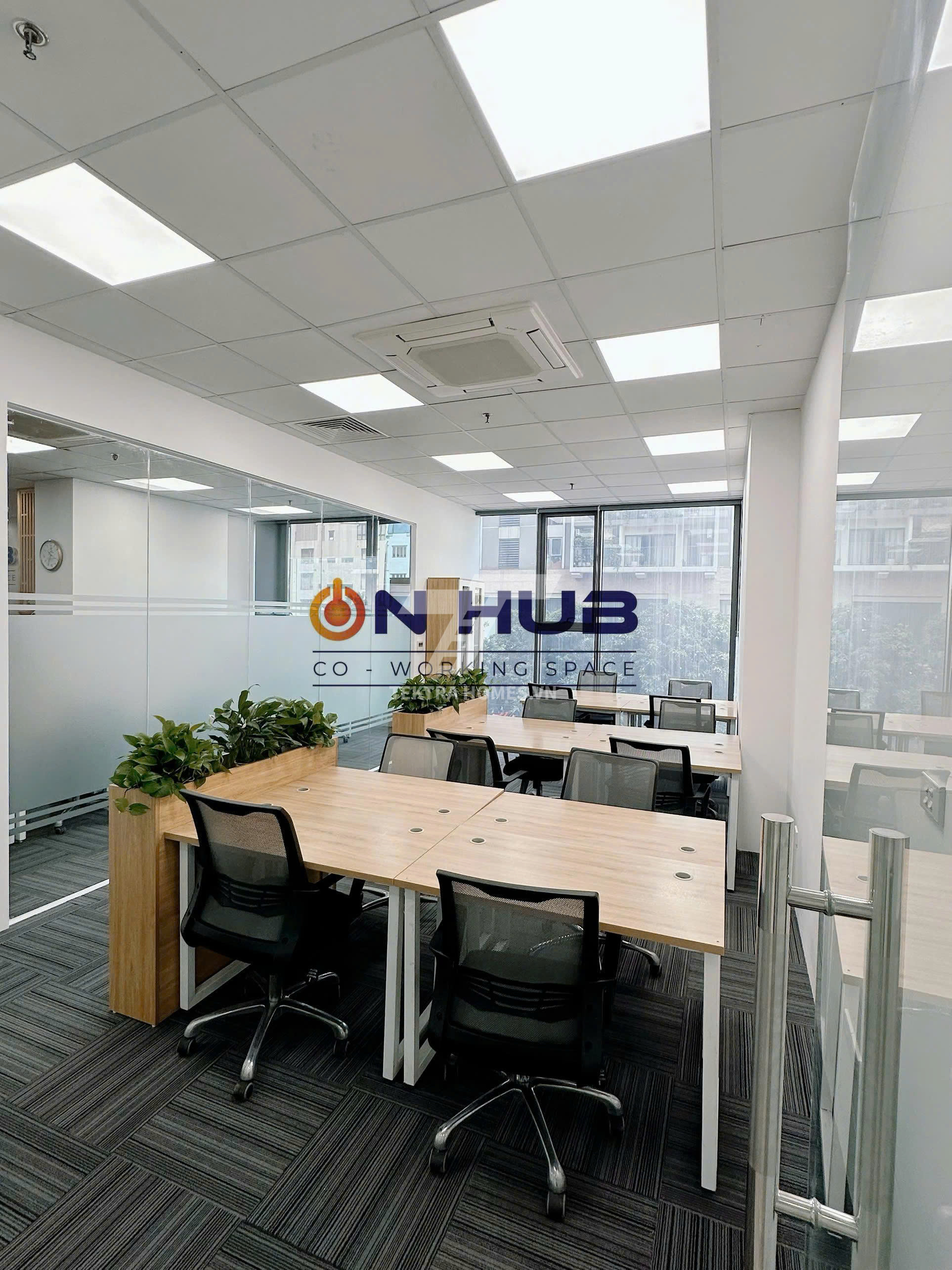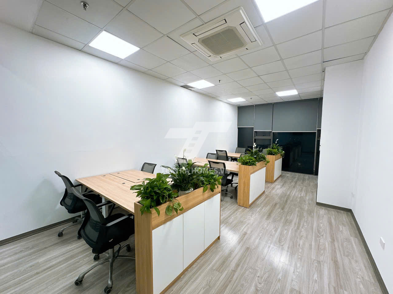 Văn phòng full nội thất, ánh sáng tự nhiên, thiết kế hiện đại.